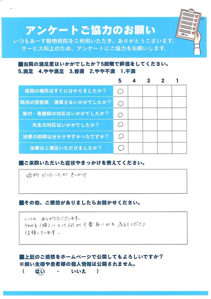うちの子(猫)にとって何が一番良いかを考えてくださり、信頼しています|八潮市のあーす動物病院 NEW